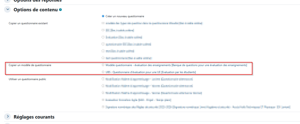 Pour ajouter un modèle de questionnaire éditable pour l’évaluation des enseignements sur Moodle :